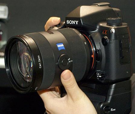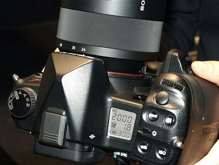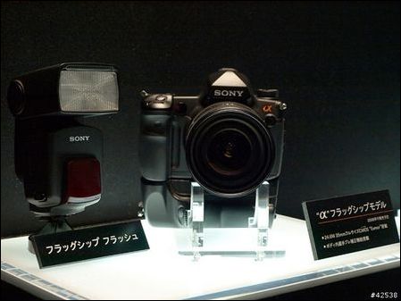 展会上突然亮相α900,大告天下首款全画幅单反即将在今年八九月间发布,它采用2460万像素CMOS传感器,如此超高像素甚至超越了称霸全画幅单反市场许多年的