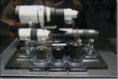 仅一款α900并不足以证明索尼在全画幅单反市场的实力,镜头群也是衡量实力的一个重要因素。索尼深喑单反和镜头的关系,于是在展示α900的同时,也大力展示了庞大的镜头系统。展会上,除不少高素质的ZA镜头外,索尼还展示多支长焦G头,其中包括80-400mm、400mm/F4、600mm/F4这三传说中的长焦镜头。另外,广角神头24mm/F1.4以及35mm/F1.8也一齐登场。