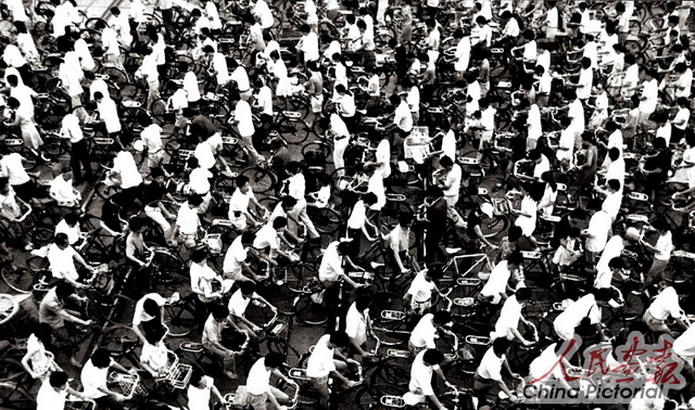 每当上下班的交通高峰,浩浩荡荡的自行车大军成为中国城市的一大独特景观,中国也因此有了“自行车王国”的称号。摄影 王文澜
