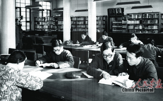1979年,北京师范大学图书馆,师生们正在查阅书刊资料获取信息。