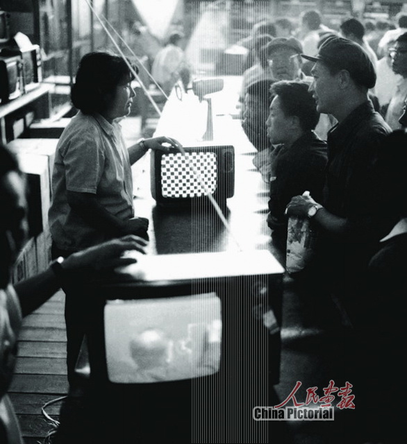 1982年,北京西单商场里顾客正在购买电视机。电视机是当时的新“三大件”之一。