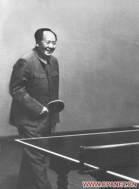 毛泽东那天的心情很好,听到身边人的话,很爽快地就答应了。说完后,几步走到球桌前,拿起了球拍??吹街飨丫龊昧俗急?,对面的人赶快把球发了过来。毛泽东接到球后,“啪”的一声把球扣了回去,动作非常有力。这时候的毛泽东还面带着微笑,准备接下一个球,而吕厚民快速地端起准备好的相机,记录下这精彩的一瞬。