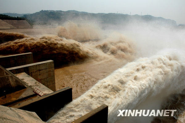 7月2日,黄河小浪底水库正在排沙?;坪有±说姿獯?月19日开始实施调水调沙,6月30日开始排沙,吸引了众多游客前来观赏“黄龙”奔涌的壮观景象。