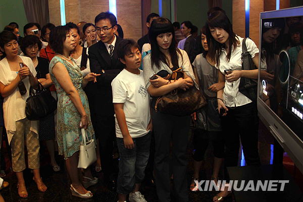 7月22日,上海观众通过电视观看日全食一刻。新华社记者张明摄