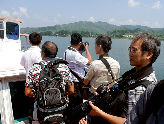 澳门、西藏、沈阳三地摄影家在丹东鸭绿江采风。