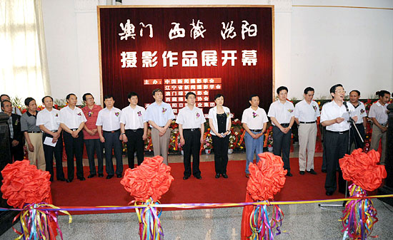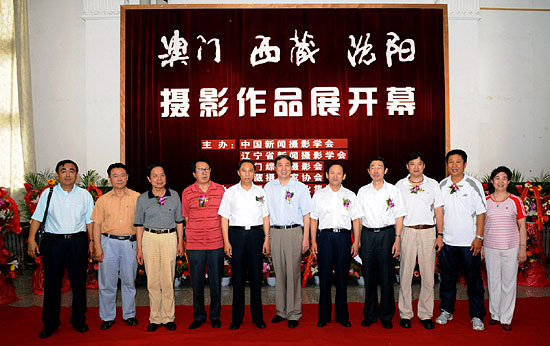 澳门、西藏、沈阳摄影作品展7月26日在辽宁美术馆隆重开幕,中国新闻摄影学会执行主席赵德润、辽宁省副省长赵国红等领导在为影展开幕式剪彩。