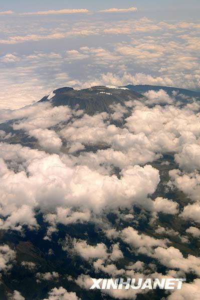 近年来,海拔5896米的非洲第一高峰——乞力马扎罗山山顶积雪融化、冰川消失现象非常严重,在过去的80年内冰川已经萎缩了80%以上。有环境专家指出,乞力马扎罗雪顶可能将在10年内彻底融化消失,届时乞力马扎罗山独有的“赤道雪山”奇观将与人类告别。这是9月4日从飞机上拍摄的乞力马扎罗山顶。新华社记者徐速绘摄
