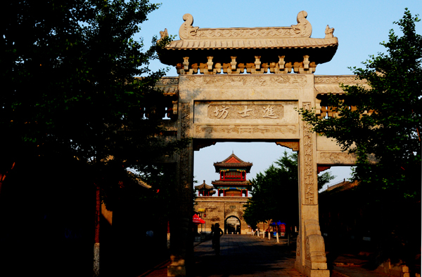 4.?山海关古城内东西大街上复建的进士坊牌楼。