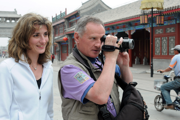 13. 来自法国的游客在拍摄山海关古城风貌。