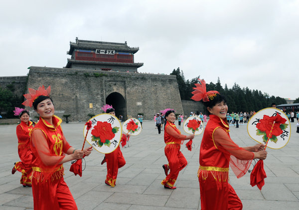 16. 中国第五个文化遗产日,山海韵老年艺术表演团在天下第一关广场表演太平鼓,宣传“非遗?;と巳瞬斡搿钡闹魈狻?/span>