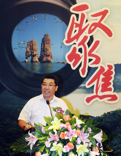 中共大连市市委副书记里景瑞在聚焦长山群岛启动仪式上致祝贺词。
