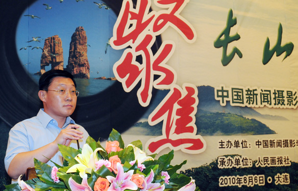 中国新闻摄影学会主席于宁在聚焦长山群岛启动仪式上发表题为“用镜头传播大连之美”的讲话。