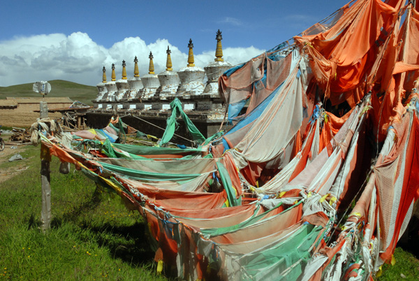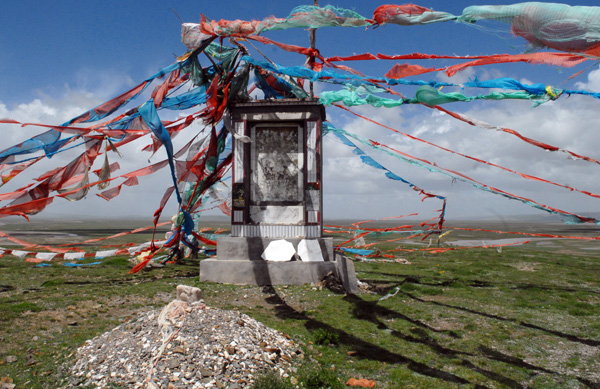 玛多县黄河乡人民政府所在地,相传是格萨尔赛马称王的起点。受尽苦难的格萨尔12岁时,与另一部落首领儿子骑马比赛,以非凡的勇气与智慧取得了胜利,获得了王位。这是格萨尔赛马称王起跑点的遗址。