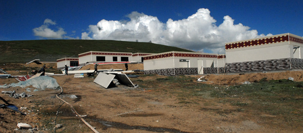玛多县是典型的牧业县,放牧期间藏族牧民生活在牧场中;为改善牧民生活状况,人民政府为牧民修建了过冬的住房。这是黄河乡正在修建牧民过冬住房的情景。