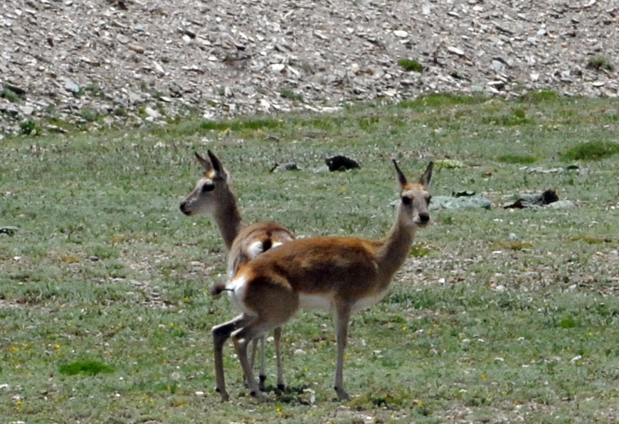 马多草原地广人稀,原始古朴,水草丰富,成为各类野生动物栖息的天堂。这是随时可见的藏原羚,又称藏黄羊。