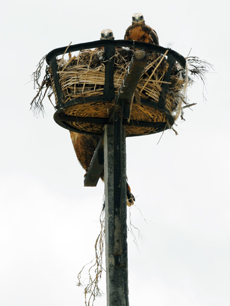 ?玛多县重视环境保护,到处可见人工修建的鹰窝,为专吃害虫的老鹰栖息。