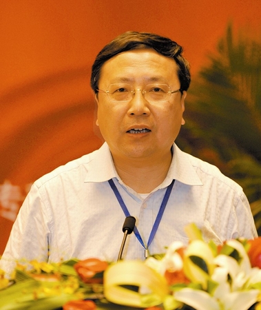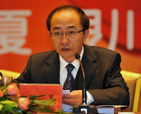 宁夏日报报业集团总编辑沙新在研讨会上作主题演讲。