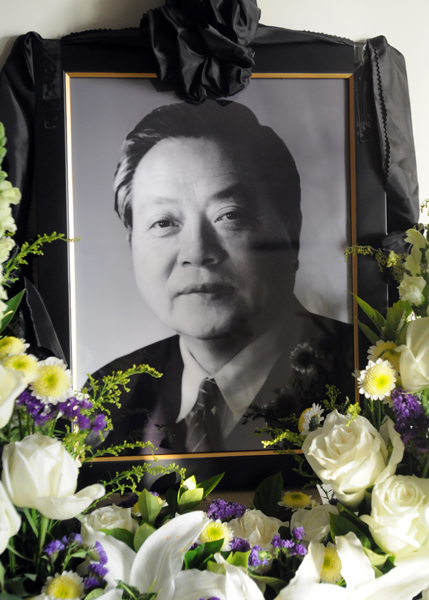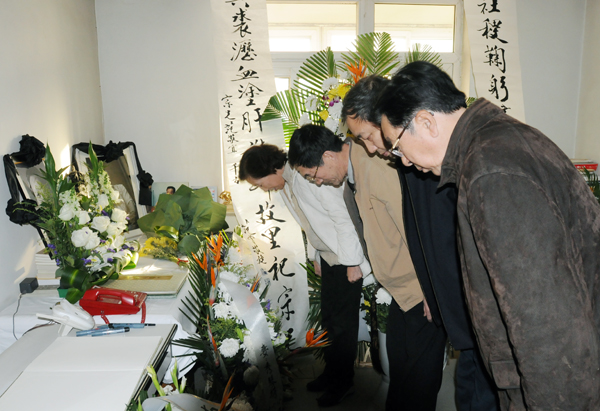 中国新闻摄影学会领导向设在家中灵堂的范敬宜同志遗像鞠躬致哀