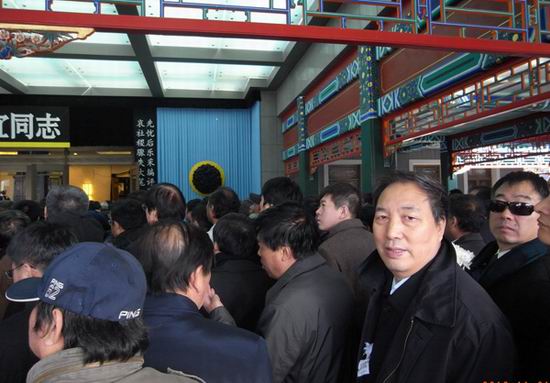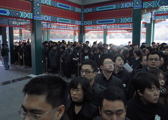 前来八宝山吊唁范敬宜先生的群众排起了长队。