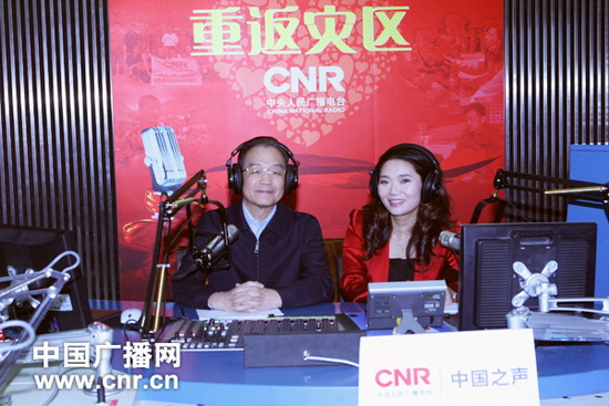 12月26日上午,中共中央政治局常委、国务院总理温家宝走进中央人民广播电台中国之声直播间,参与特别节目《重返灾区——中国之声温暖行动》。