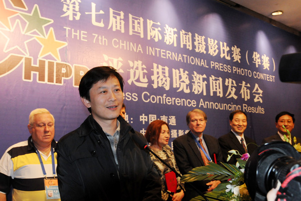 25日上午,第七届国际新闻摄影比赛组委会在评选地江苏省南通市举行新闻发布会,中国新闻摄影学会执行主席、第七届华赛评委会主席赵德润发布新闻,中国新闻摄影学会副主席、第七届华赛评委徐步宣布评选结果。