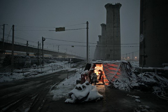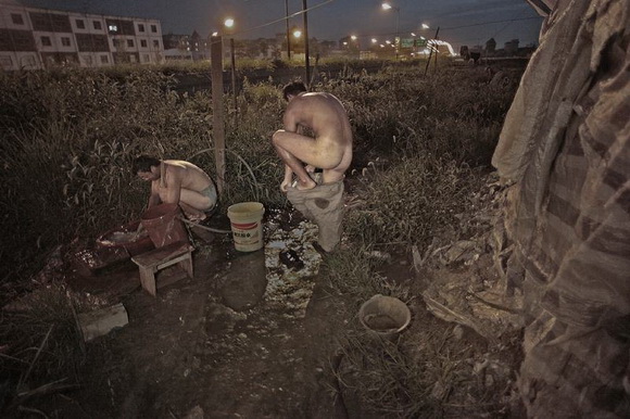 ??? 高速铁路工地没有专门的自来水和淋浴卫生间,更没有冷暖设备,日常洗漱都在工棚的自打井水边上。饮用自来水要到1公里外去拉。