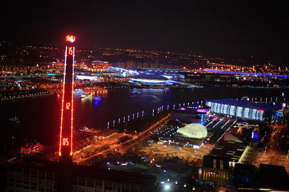 ????2010上海世博会期间,记者乘坐直升机从空中俯拍上海世博园,夜幕下的世博园美不胜收。