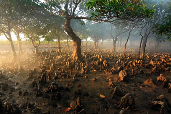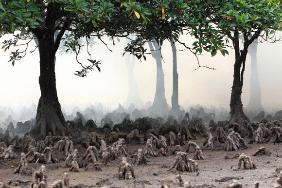 在防城港市交东村,有一条上世纪70年代修建的海堤,在经历了30年的风风雨雨之后,至今仍然完好无损,甚至期间没有过一次维修,当地人清楚的知道那是因为红树林发挥着防浪护堤的作用。长年以来,海堤前面的红树林使村庄免受台风的侵扰,也是这片红树林为渔民们长期收获着丰沛的鱼虾提供了保障。