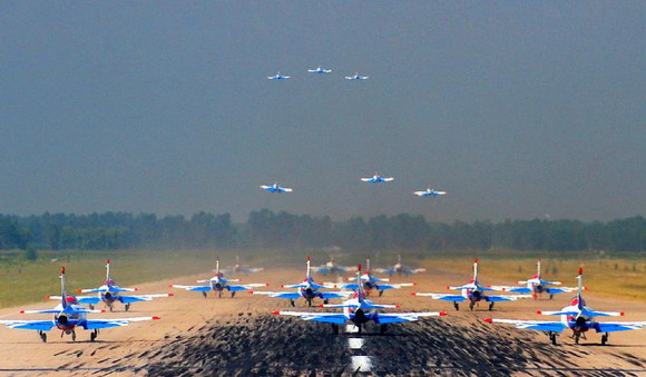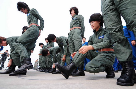 ??? 2009年国庆大阅兵,15架“教八”飞机在天安门上空划下了五道绝美的人间彩虹;虎年春晚,16名空中花木兰的飒爽英姿感动国人,成为目光汇聚的焦点;如今,这16名歼击机女飞行员即将完成教练机的全部训练课程,4月起,她们将改装先进的歼击战斗机,实现从飞行员到战斗员的转变。
