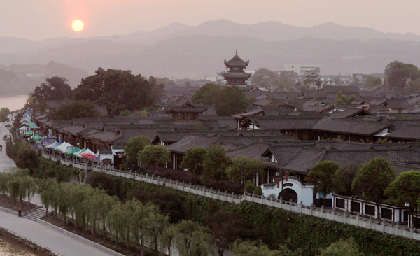 8、日落西山,晚霞染红天际,暮色洒向古城。