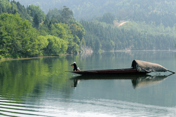 22、游船在构溪河国家级湿地?;で嫔闲薪路鹪诼淌髦写┬?。