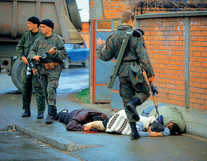 照片中这些军人是塞尔维亚军阀阿尔钦的手下,刚刚枪杀了一位穆斯林屠夫以及他的妻子和小姨子。这是稍后种族清洗运动的开端。