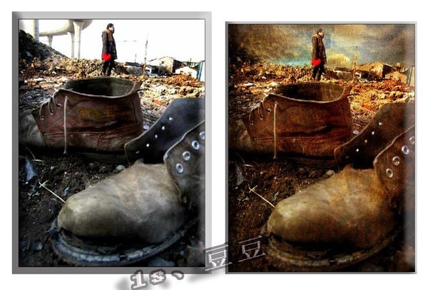 6 为了寻求油画中的肌理效果,在色调层上面再添加了一个素材层