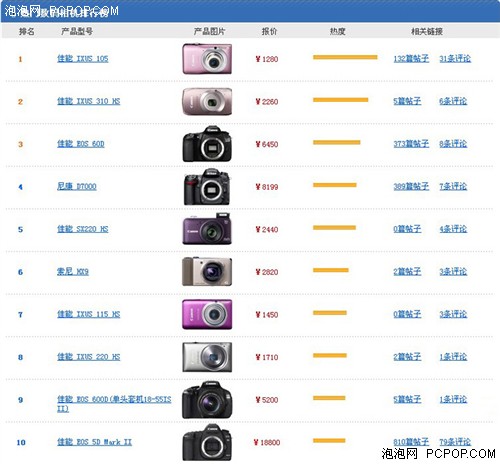 泡泡网热门数码相机产品关注排行榜(截止6月30日)