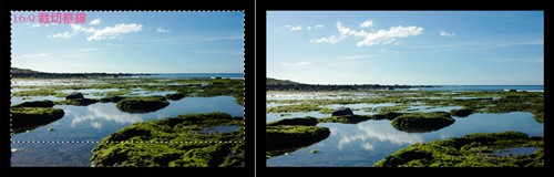 长宽比分别为左边3:2,右边16:9,这样有没有很清楚?关键在于,我们常用裁切的方式来处理所谓的“宽屏比例”,如16:9、2:1,但是,裁切会造成部分画面的损失,请看图b。