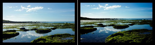 当你整理照片时,发现取景不够宽广,少了那一点气势,怎么办?如图a,左边是无修正过的原始照片,右边是修正过的完成图。为了凸显比例的重要,特别为大家加了很粗勇的黑框,帅吧!