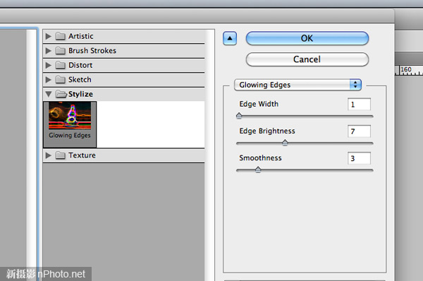 接下来“滤镜-风格化-照亮边缘”。使用下图中的设置。