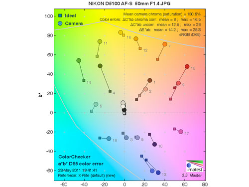 从测试结果来看,索尼A35白色表现并不偏色,成像对红色较为敏感。很适合拍摄人像作品。而尼康D5100成像则明显偏青色。从测试结果来看,索尼A35表现更好一些。