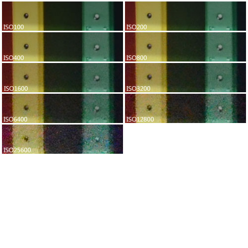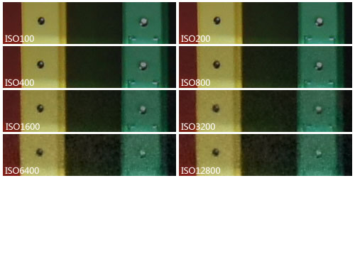 对于感光度测试,我们使用索尼A35和尼康D5100分别用不同感光度拍摄同一场景。然后将拍摄样本在同一位置进行切片截图。