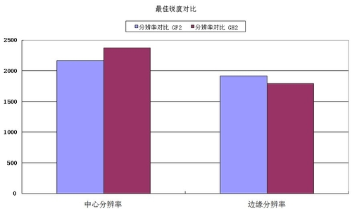 从实际的最佳锐度对比中看,中心锐度GH2要远远好于GF2,而边缘锐度GF2的表现要强过GH2不少。