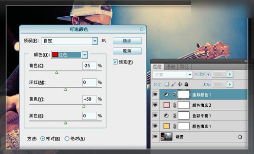 6、新建可选颜色调整图层,对红,黄及中性色调整,参数设置如下图。