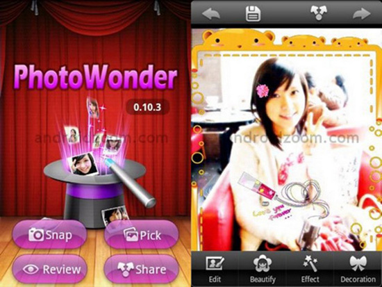 PhotoWonder是个在手机上编辑图片的趣味应用。带有诸如LOMO、BlueTone和老化、可爱标签与镜框等出彩效果,这个应用真是太有意思了。