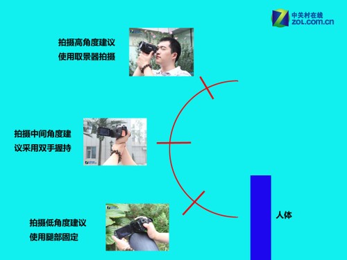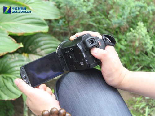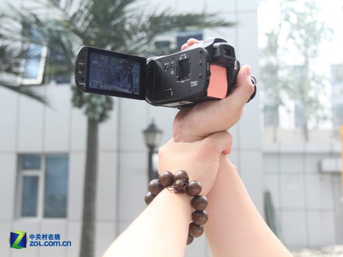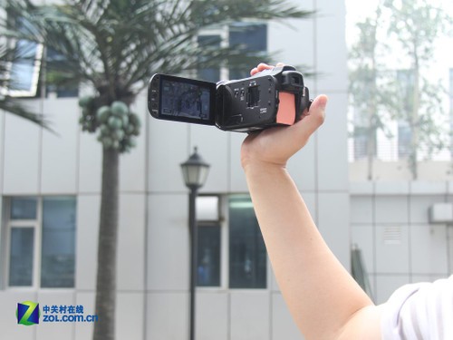 相信大多数用户都会采用上图这种单手持DV的方法进行拍摄,虽然样子看上去很酷,但实际这是一种错误的拍摄方式。除非有特殊情况导致您的另一只手无法工作,否则我们一般不建议使用这种方法进行拍摄,正确的拍摄方法应该如下图所示。
