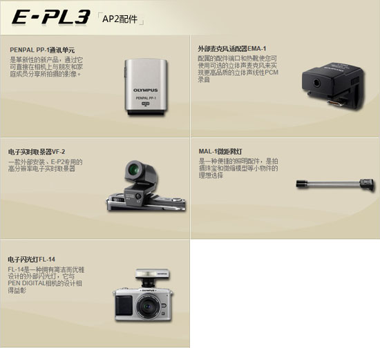 另外,E-PL3还有三款原厂的镜头接环可用,它们是: