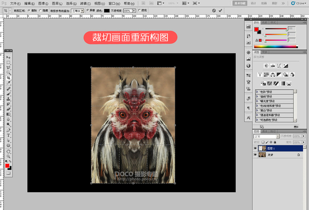 大家都知道美术是加法,摄影是减法,我们只要把需要表现的画面留下就可以了,所以我们要把这张图重新裁剪。使用裁剪工具“C”裁剪到需要的画面。