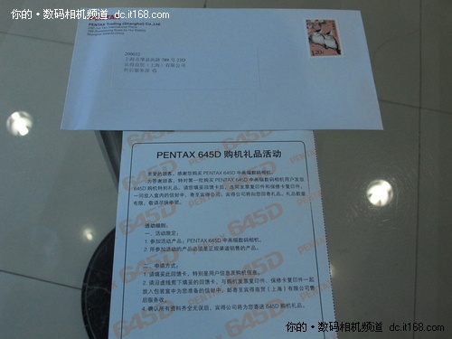 购机换礼活动的说明和信封,方便邮寄回宾得公司换取礼品(下页就有真机了哦)