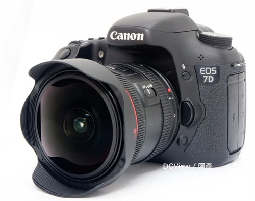 ▼接上鱼眼的佳能EOS-7D,重量分配适中(5D II类似)