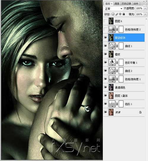 第七步,使用“曲线”工具分别调整各通道的颜色,使图片的细节更显丰富。(图略)