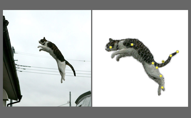 操控变形的功能,对人物或动物也同样适用,这只跳跃的猫,我觉得跳的动感还不够,于是使用操控变形,使它跳得更有型一些
