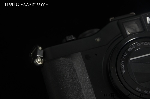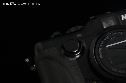 尼康P7100在正面手柄右侧添加了一个竖置的拨轮,这个拨轮可用于光圈的调节,一方面在光圈调节上前拨轮比较顺手,而另一方面前后双拨轮也更显高端嘛。